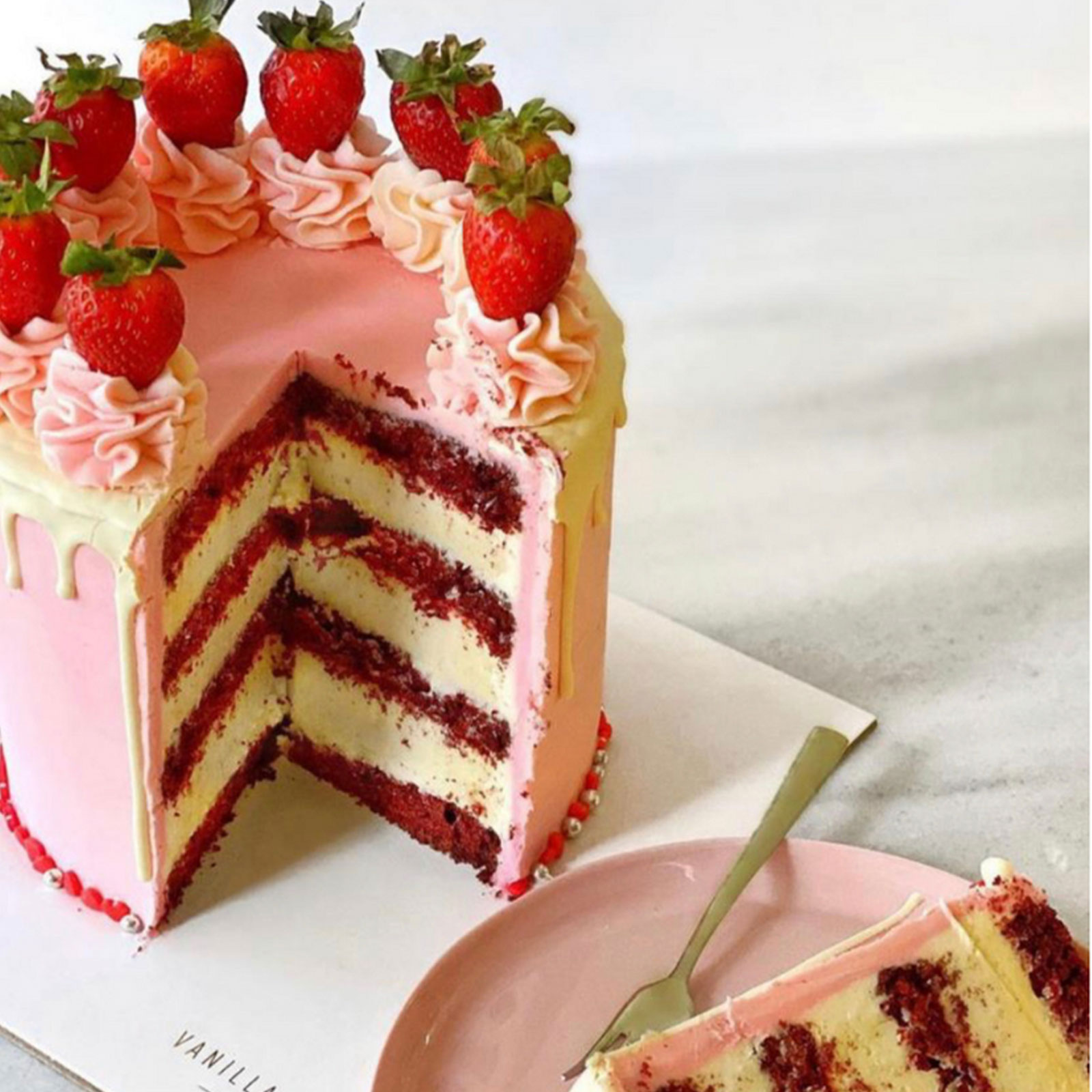 Lezzetli bir pasta hayal ederken aklınızda canlanan o kremalı pasta, Pinky Dreams Cake ile gerçeğe dönüşüyor. Pembe rengi sevenler için tasarlanan bu pastanın içerisinde de canlı renkler sizi karşılıyor. İnce Red Velvet kek katları ve arasındaki yoğun pastacı kremasıyla tadına doyulmaz bir lezzet ortaya çıkıyor. Red Velvet pastanın dış yüzeyi açık pembe renk ile kaplanırken kenarlarından da beyaz çikolata akıtılarak bu nefis görüntüyü tamamlıyor. Üst bölümde ise pastaya hareketli bir görünüm katan krema sıkımları yer alıyor. Her bir krema sıkımının üzerine yerleştirilen lezzetli çilekler, bu tasarımın görüntüsüne tazelik katıyor. Pastanın taban bölümünde ise gümüş ve pembe renkli şeker boncuklarından ince bir hat oluşturuluyor. Bu sayede ürünün bütünündeki görsel uyum sağlanıyor. Siz de yemeye doyamayacağınız bu enfes Red Velvet buttercream pastayı sayfamız üzerinden hemen sipariş verebilirsiniz.