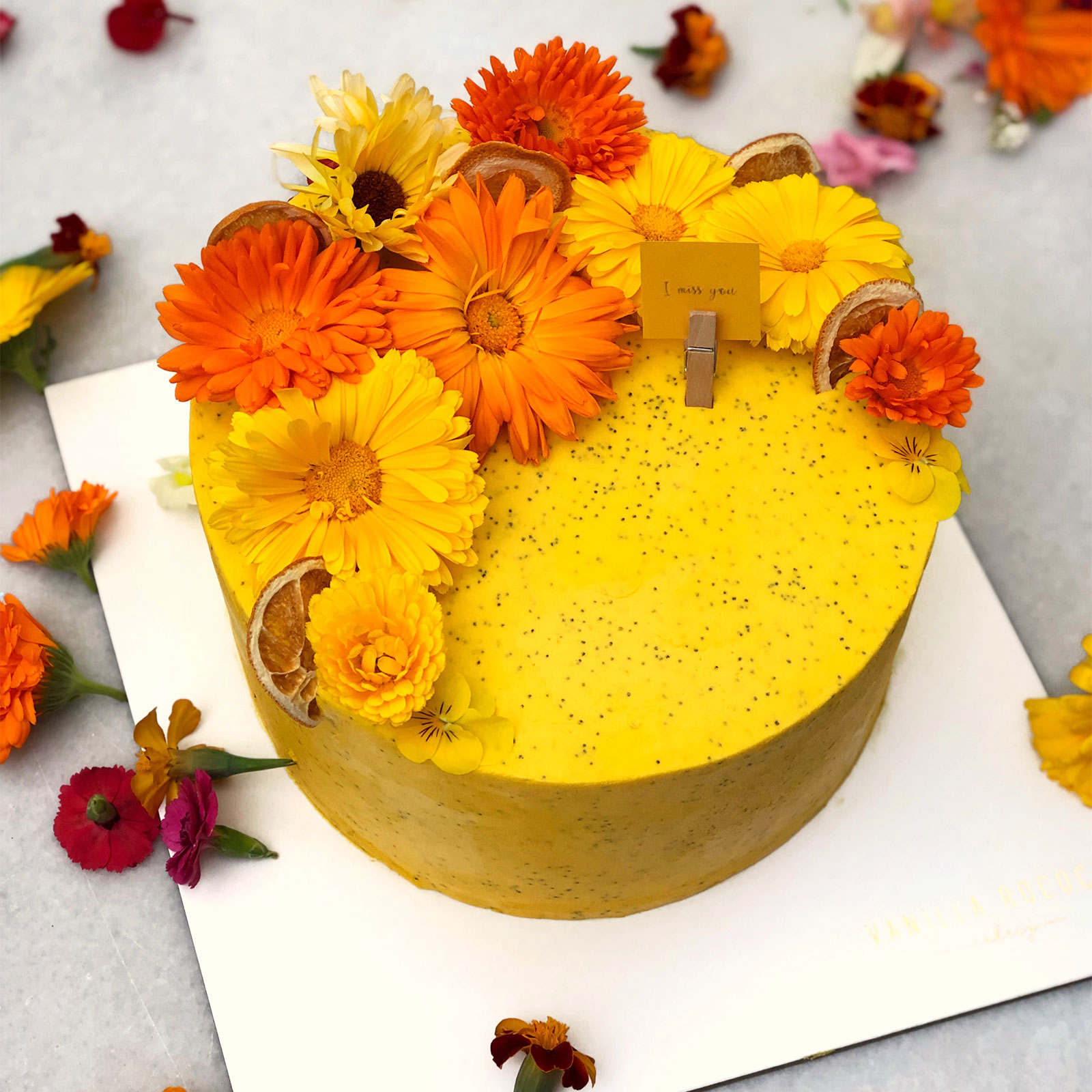 Yellow Edible Flowers Cake
